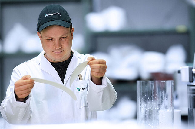 Mit dem neuen Verfahren »Papure« gelingt Papierfügen ohne Fremdstoffe. © Fraunhofer IVV