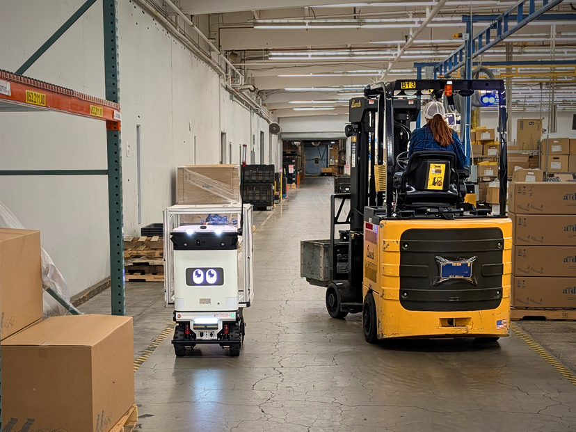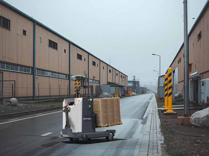 Neu in der AMR-Familie seit 2026:Der «Cartken Mover», ein autonomer Palettenhubwagen, ist mit einer Nutzlast von bis zu 1500 kg für schwere Lasten ausgelegt, zum Beispiel für Palettentransport im Aussen- oder Hallenbereich. © Cartken