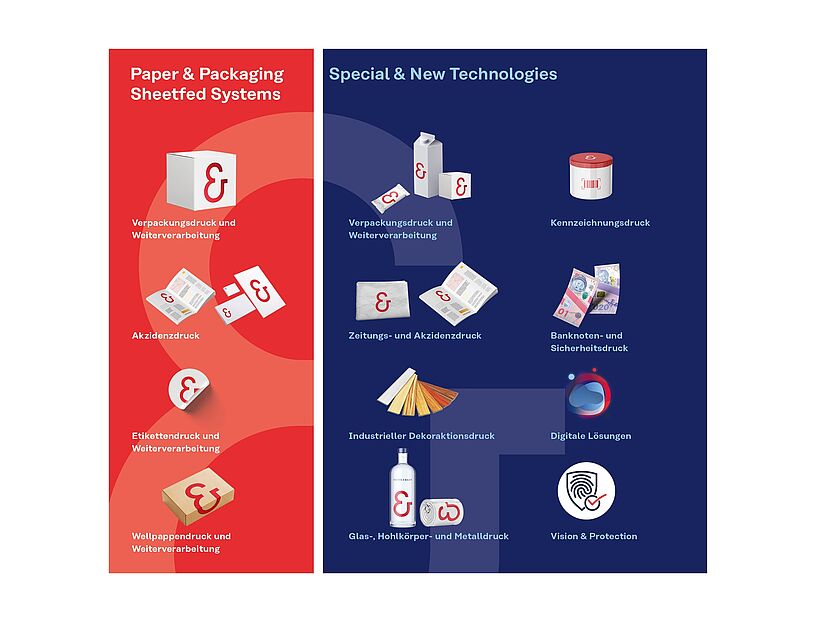 Unser Portfolio von Bogenoffset wie der Rapida- Serie, Highend-Wellpappendruckmaschinen, über Rollen- CI Flexo bis hin zu digitalen Lösungen – deckt praktisch alle relevanten Anwendungen ab: Faltschachteln, Etiketten, flexible Verpackungen, Glas, Dekor und mehr. Die Maschinen sind konsequent auf Präzision, hohe Nettoproduktivität und kurze Rüstzeiten ausgelegt. Wir investieren seit Jahren in Technologien, die Makulatur, Rüst- und Waschzeiten senken und damit Ressourcen schonen. Oder, wie ich es gerne zuspitze: Unser Kunde ist der König, wir sind die «Bauer»: Wir liefern das technische Fundament, damit unsere Kunden ihre Marktanforderungen erfüllen können, heute und in Zukunft.