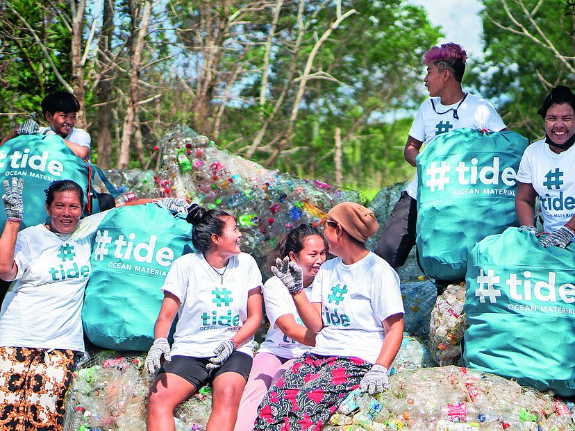Kunststoffabfälle in Küstennähe, z. B. in Südostasien, werden von geschulten Sammlern zusammengetragen und vor Ort sortiert, gereinigt und zerkleinert. Die resultierenden Flakes sind der Rohstoff für das Granulat aus #tide Ocean Material. © Gregab AG.