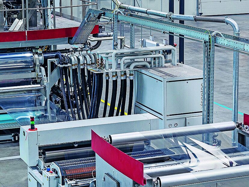 Auf der Anlage wird das Granulat zur lebensmitteltauglichen Folie aus Gregab Ocean PET verarbeitet. © Gregab AG.