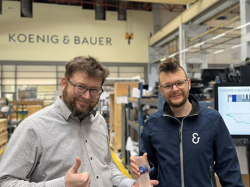 Das Projekt von Vasco A. Sahlbach (rechts) und Stephan Förster (links) hat in der Belegschaft die meisten Stimmen erhalten Foto: Koenig & Bauer
