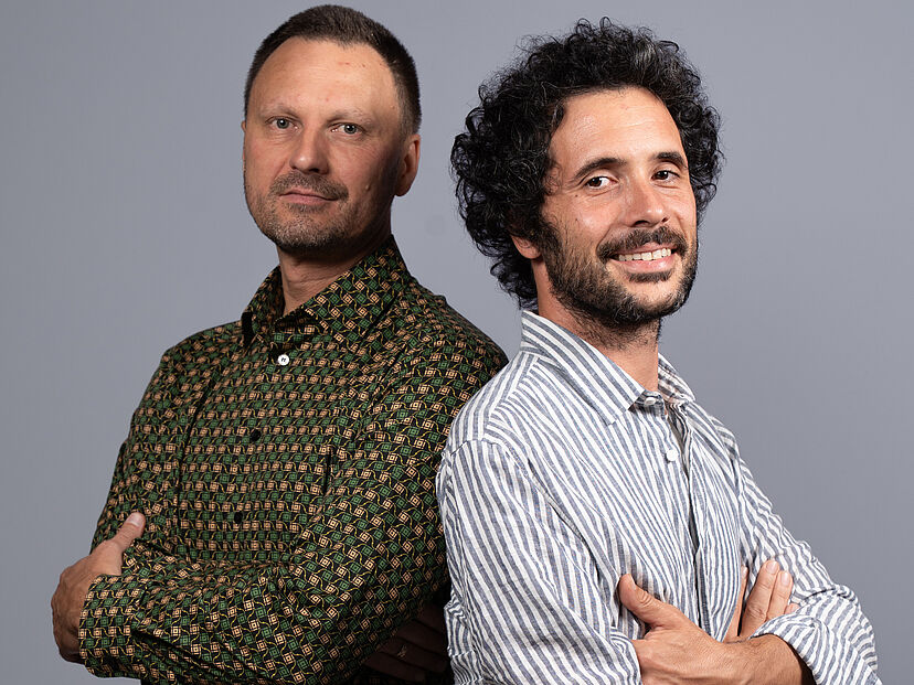 Erfolgreicher Testlauf: Massimo Bagnani (Mitte), Mitgründer von Peelpack, bei Tobi Seeobst. © Peelpach AG